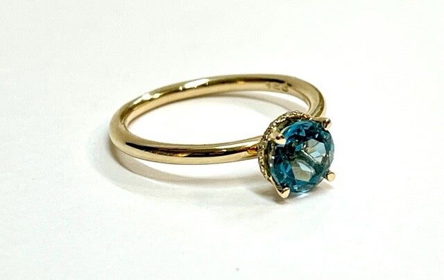 Rosita's Mix London Blue Topaz en Diamond halo Geelgoud