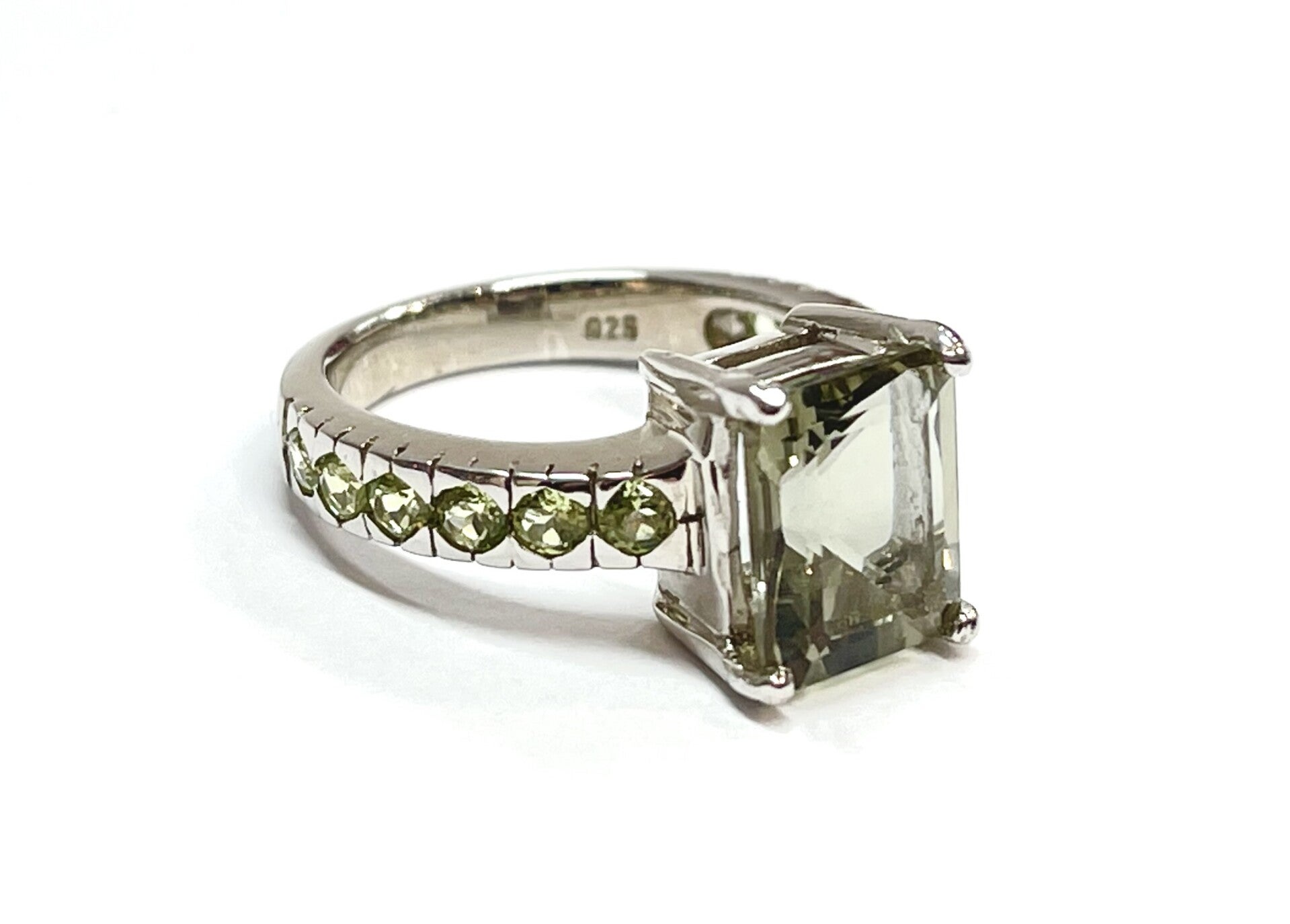Deze prachtige Zilveren handvervaardigde ring bezet met Peridot en een vierkante Groene Kwarts