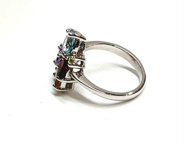 Zilveren Multicolor ring met Amethyst, Citrine, Peridot, Garnet en Blue Topaz