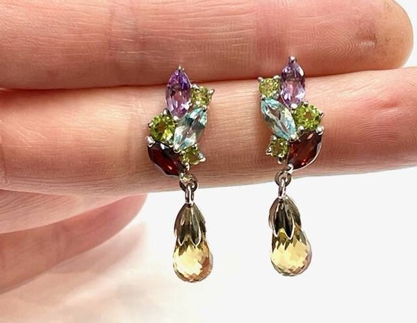 Deze prachtige Zilveren multicolor stekers is bezet met Amethist, Citrien, Peridot, Rhodoliet, Blauw Topaas