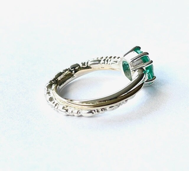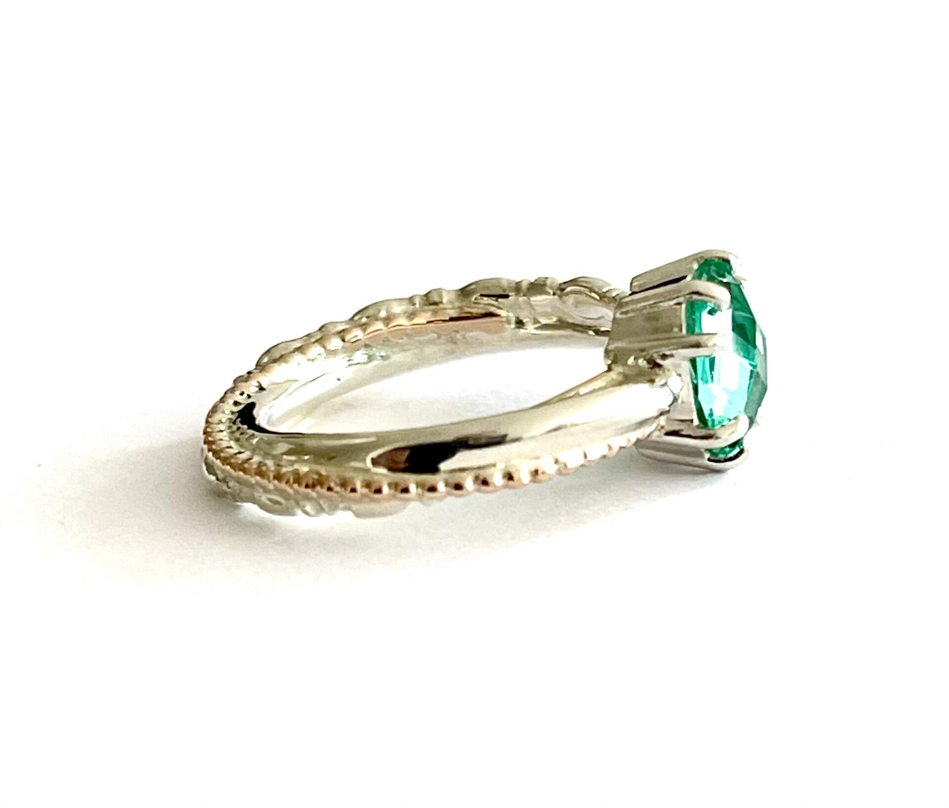 Deze prachtige handvervaardigde zilveren ring met Roségoud en Geelgoud is bezet met Groene Kwarts en behoort tot onze Huggs collectie
