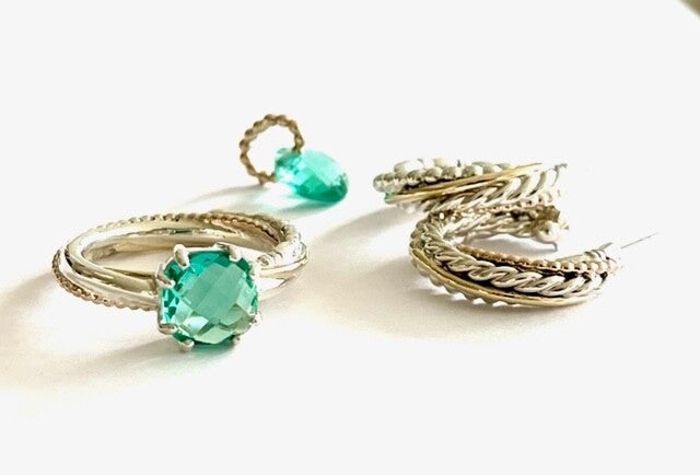 Huggs ring Zilver, Roségoud en Geelgoud met Green Quartz