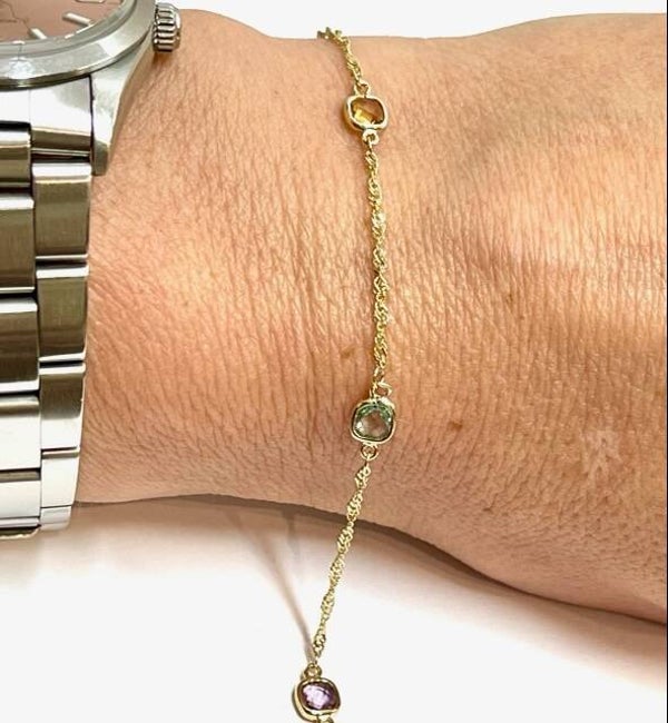 Prachtige 14 krt Geelgouden armband met Amethist, Citrien en Blauw Topaas.