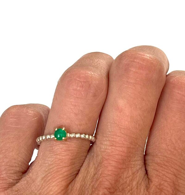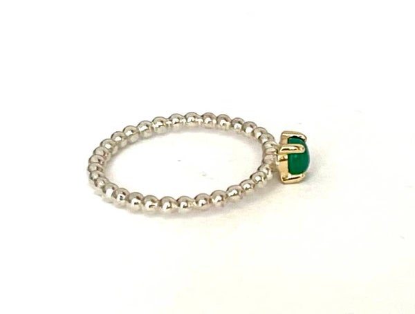 Deze prachtige handvervaardigde zilveren ring met geelgouden zetting is bezet met Groene Onyx en behoort tot onze Rosita's Mix collectie.