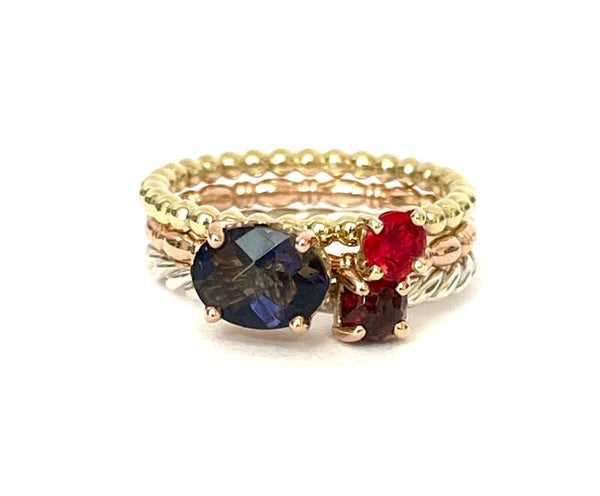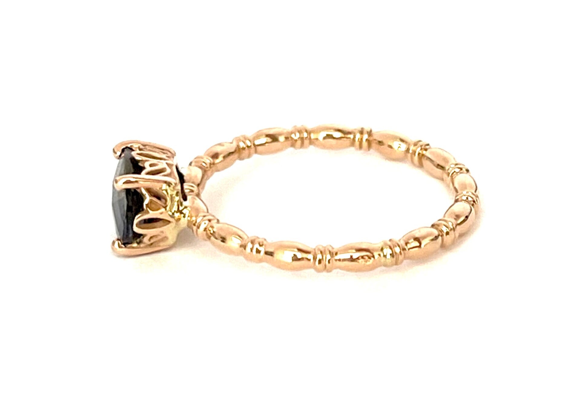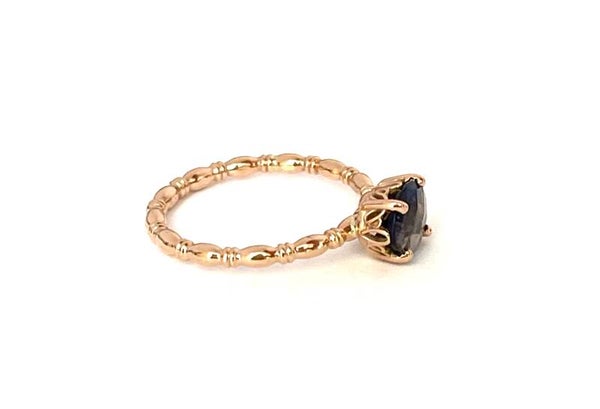 Deze prachtige handvervaardigde Rosegouden ring is bezet met Iolite behoort tot onze Rosita's Mix collectie.