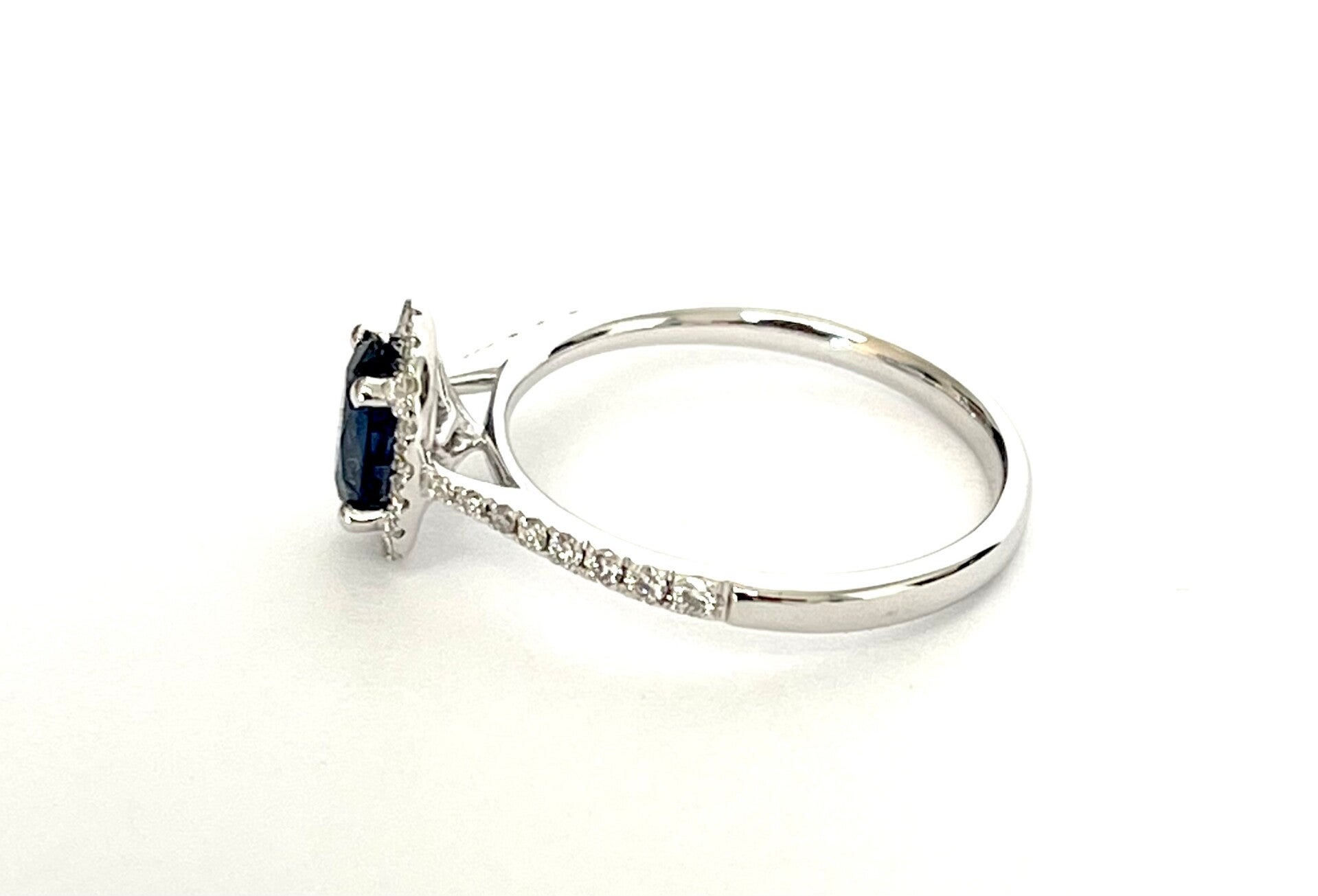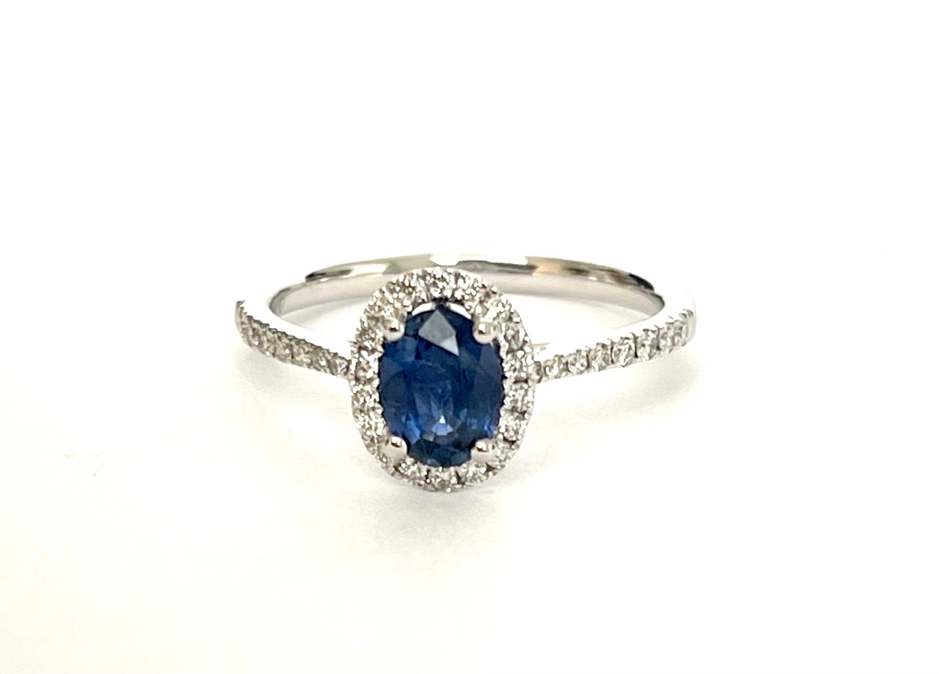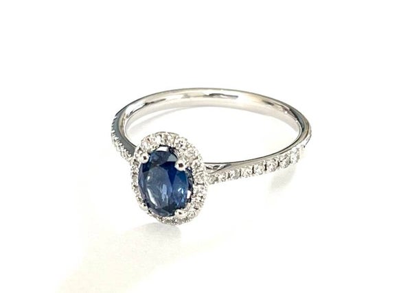Sapphire met Diamond Halo in Witgoud