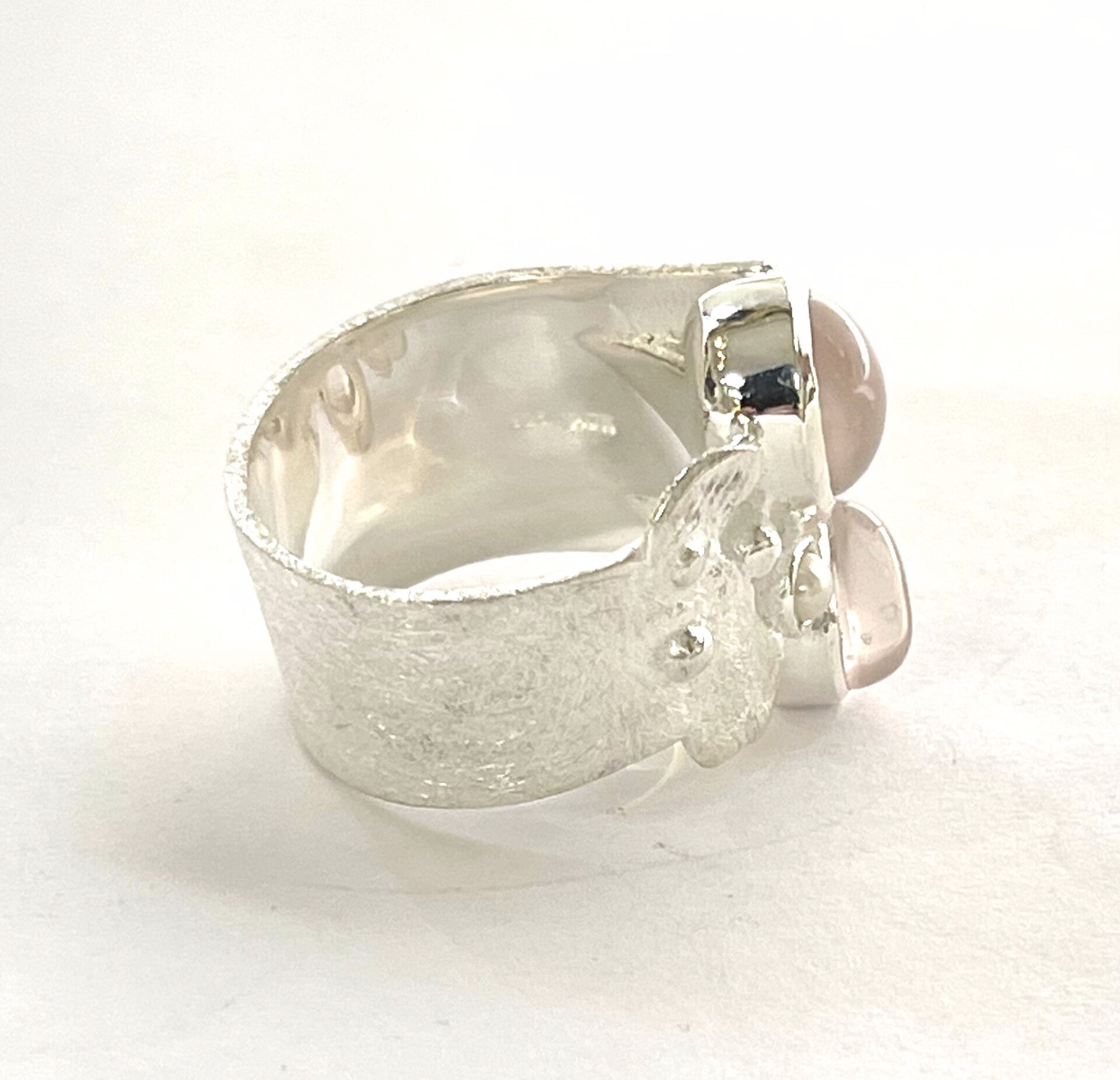 Prachtige zilveren ring met Rozenkwarts en Parel